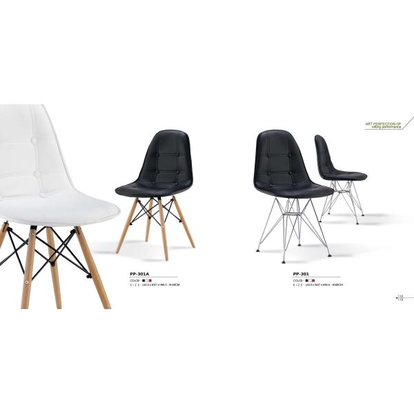 We produce and sell contemporary fashionable dining chair with wooden leg