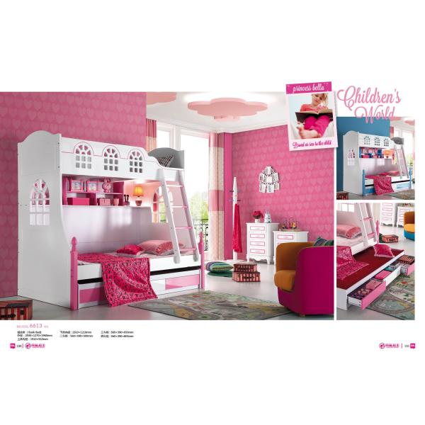 We produce and export children wood bunk bed with pulled bed and three drawers.